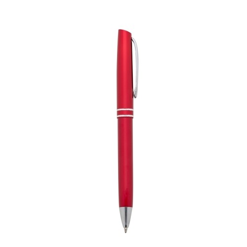 Caneta semi metálica, carga esferográfica azul e acionamento por clique.