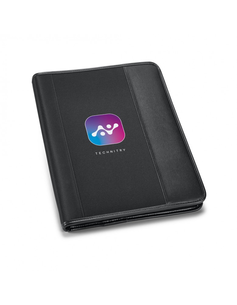 Pasta A4 em c. sintético e microfibra com 4 argolas de 20 mm e caderno com 20 folhas pautadas. Pen drive não inclusa. 265 x 340 x 45 mm