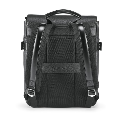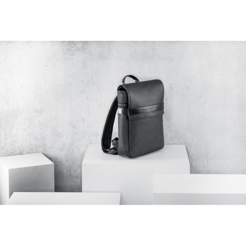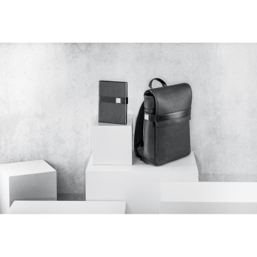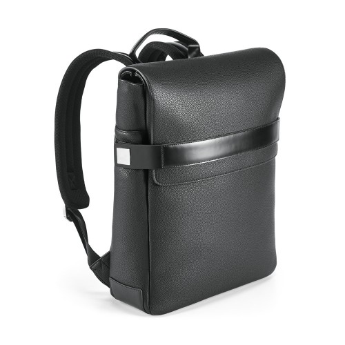 A mochila EMPIRE é sofisticada e construída em c.sintético texturado de elevada qualidade. O compartimento principal é composto por 2 divisórias almofadadas, compatíveis com notebook até 14'' e tablet até 10.5'', e diversos bolsos que facilitam a arrumação. Na parte frontal, existe mais um bolso grande. Os fechos laterais têm imã resistente e placas metálicas ideais para personalização. A parte posterior, com sistema de apoio acolchoado para as costas e as alças totalmente almofadadas, garante máximo conforto e os cantos inferiores reforçados asseguram durabilidade. Contém bolsos interiores e fecho. A mochila EMPIRE tem banda para transporte em trolley, o que a torna num objeto versátil e prático tanto para o dia-a-dia como para viagens de negócios. Fornecida em sacola de non-woven. Mochila: 290 x 370 x 90 mm | Sacola de non-woven: 500 x 500 x 80 mm