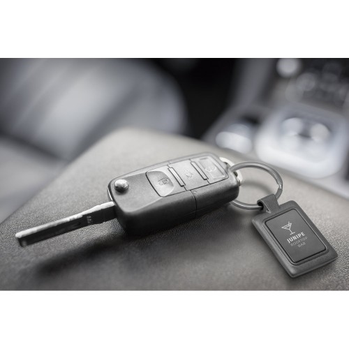 Chaveiro em metal quadrado. Fornecido em caixa presente. 28 x 47 x 4,5 mm