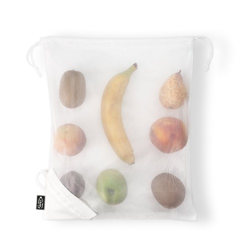 Sacola dobrável em malha rPET com bolsa em rPET 190T para dobrar a sacola. Ideal para as compras. 320 x 400 mm